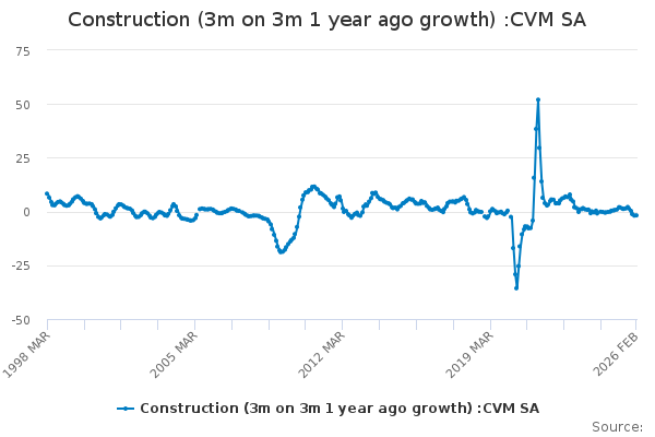 Download this time seriesConstruction (3m on 3m 1 year ago growth) :CVM SA