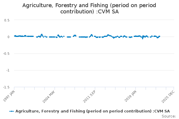 Download this time seriesAgriculture, Forestry and Fishing (period on period contribution) :CVM SA