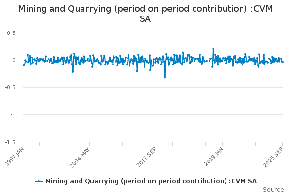 Download this time seriesMining and Quarrying (period on period contribution) :CVM SA