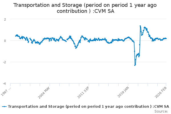 Download this time seriesTransportation and Storage (period on period 1 year ago contribution ) :CVM SA