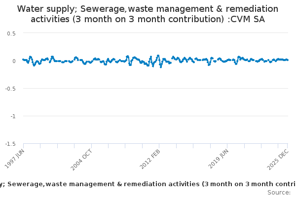 Download this time seriesWater supply; Sewerage,waste management & remediation activities (3 month on 3 month contribution) :CVM SA
