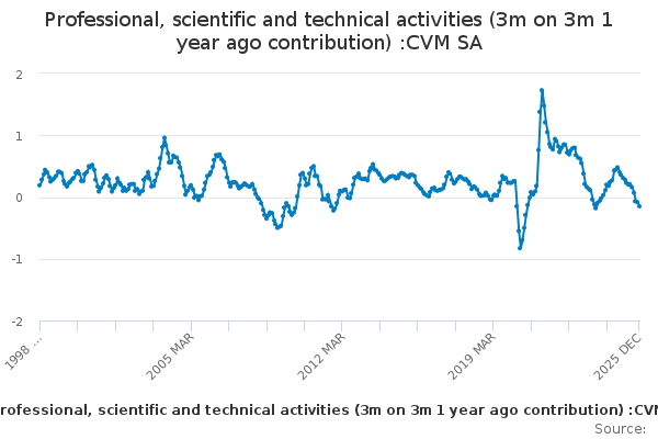 Download this time seriesProfessional, scientific and technical activities (3m on 3m 1 year ago contribution) :CVM SA
