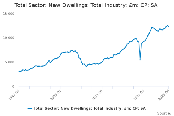 Download this time seriesTotal Sector: New Dwellings: Total Industry: £m: CP: SA