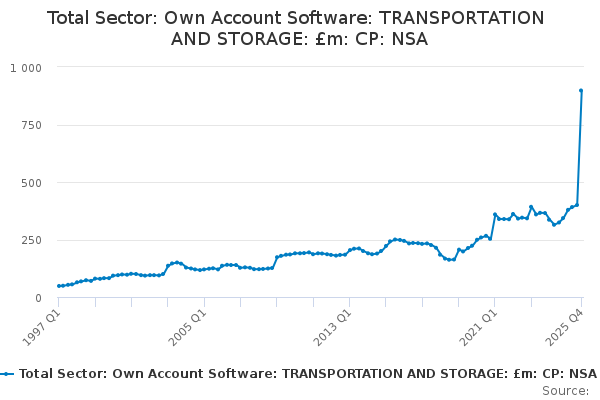 Download this time seriesTotal Sector: Own Account Software: TRANSPORTATION AND STORAGE: £m: CP: NSA