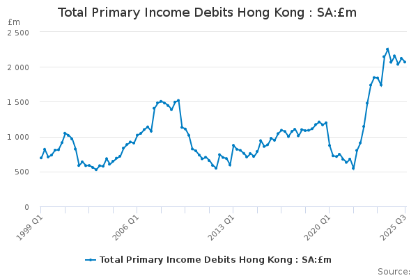 Download this time seriesTotal Primary Income Debits Hong Kong : SA:£m