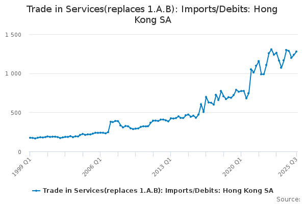 Download this time seriesTrade in Services(replaces 1.A.B): Imports/Debits: Hong Kong SA