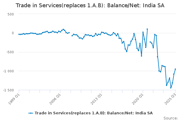 Download this time seriesTrade in Services(replaces 1.A.B): Balance/Net: India SA