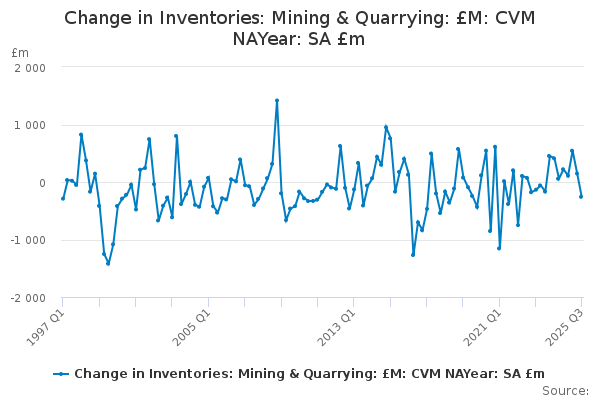 Download this time seriesChange in Inventories: Mining & Quarrying: £M: CVM NAYear: SA £m