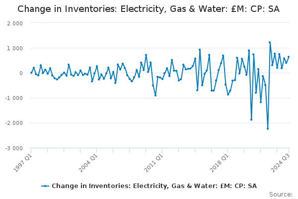 Download this time seriesChange in Inventories: Electricity, Gas & Water: £M: CP: SA
