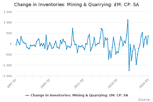 Download this time seriesChange in Inventories: Mining & Quarrying: £M: CP: SA