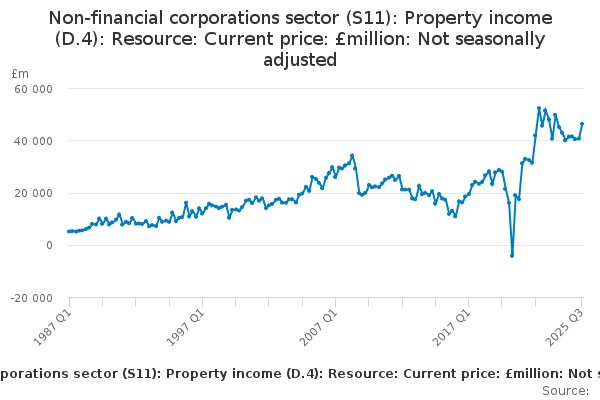 Download this time seriesNon-financial corporations sector (S11): Property income (D.4): Resource: Current price: £million: Not seasonally adjusted