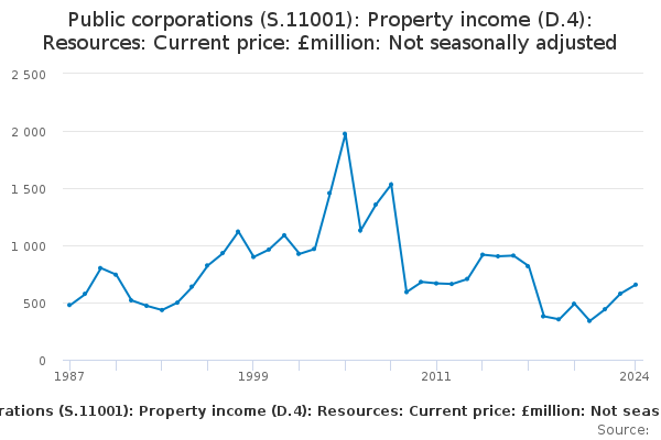 Download this time seriesPublic corporations (S.11001): Property income (D.4): Resources: Current price: £million: Not seasonally adjusted