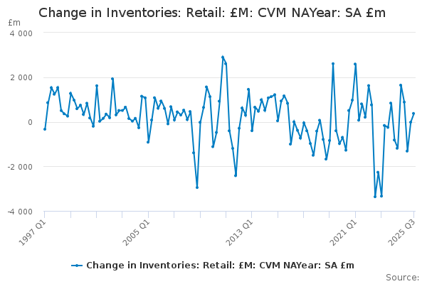 Download this time seriesChange in Inventories: Retail: £M: CVM NAYear: SA £m