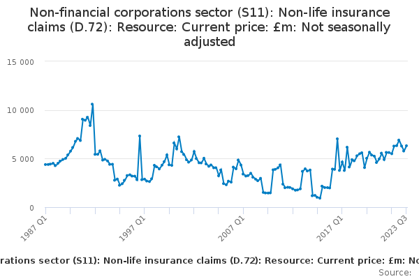 Download this time seriesNon-financial corporations sector (S11): Non-life insurance claims (D.72): Resource: Current price: £m: Not seasonally adjusted