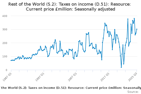 Download this time seriesRest of the World (S.2): Taxes on income (D.51): Resource: Current price £million: Seasonally adjusted