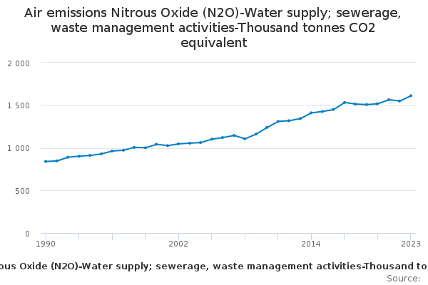 Download this time seriesAir emissions Nitrous Oxide (N2O)-Water supply; sewerage, waste management activities-Thousand tonnes CO2 equivalent