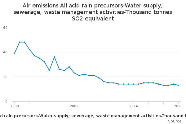 Download this time seriesAir emissions All acid rain precursors-Water supply; sewerage, waste management activities-Thousand tonnes SO2 equivalent