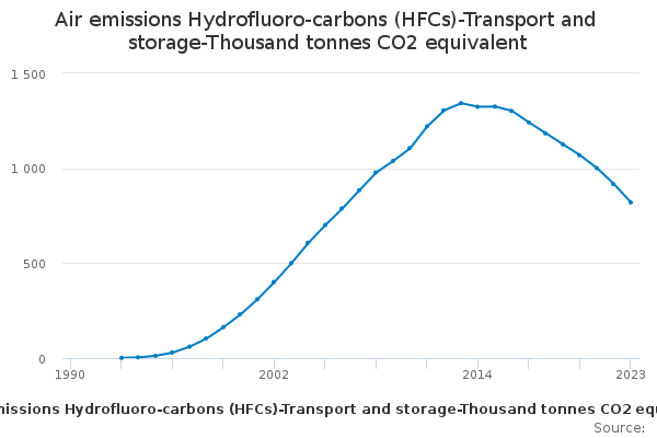Download this time seriesAir emissions Hydrofluoro-carbons (HFCs)-Transport and storage-Thousand tonnes CO2 equivalent