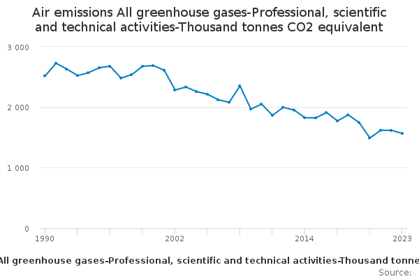 Download this time seriesAir emissions All greenhouse gases-Professional, scientific and technical activities-Thousand tonnes CO2 equivalent