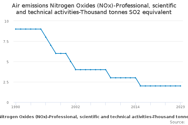 Download this time seriesAir emissions Nitrogen Oxides (NOx)-Professional, scientific and technical activities-Thousand tonnes SO2 equivalent