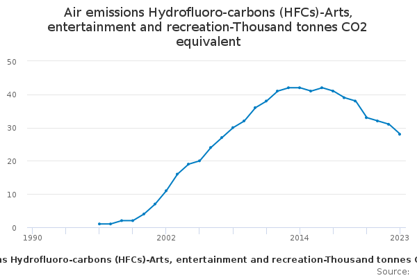 Download this time seriesAir emissions Hydrofluoro-carbons (HFCs)-Arts, entertainment and recreation-Thousand tonnes CO2 equivalent
