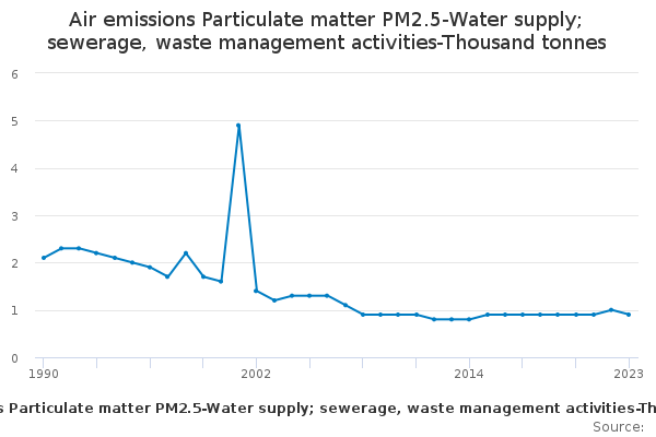 Download this time seriesAir emissions Particulate matter PM2.5-Water supply; sewerage, waste management activities-Thousand tonnes