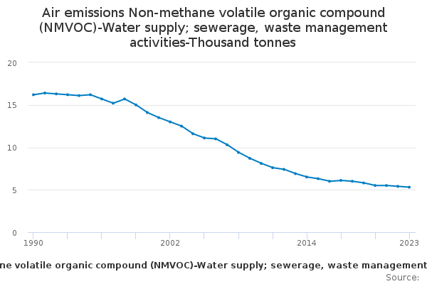 Download this time seriesAir emissions Non-methane volatile organic compound (NMVOC)-Water supply; sewerage, waste management activities-Thousand tonnes