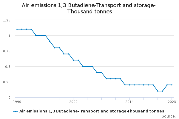 Download this time seriesAir emissions 1,3 Butadiene-Transport and storage-Thousand tonnes