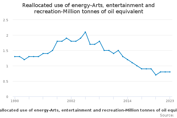 Download this time seriesReallocated use of energy-Arts, entertainment and recreation-Million tonnes of oil equivalent