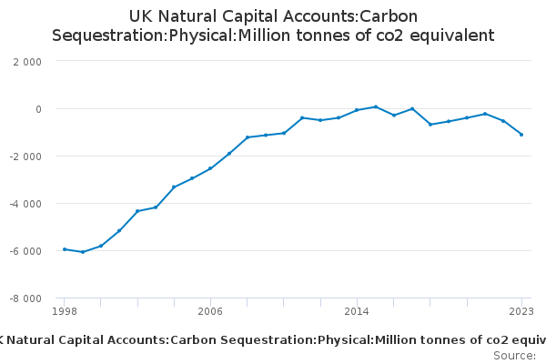 Download this time seriesUK Natural Capital Accounts:Carbon Sequestration:Physical:Million tonnes of co2 equivalent