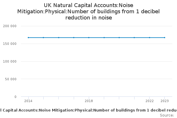 Download this time seriesUK Natural Capital Accounts:Noise Mitigation:Physical:Number of buildings from 1 decibel reduction in noise