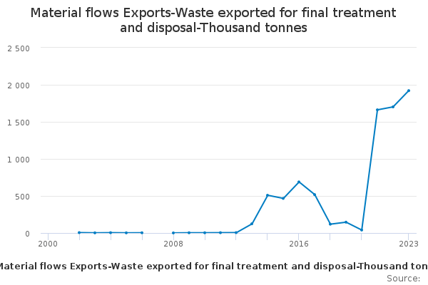 Download this time seriesMaterial flows Exports-Waste exported for final treatment and disposal-Thousand tonnes