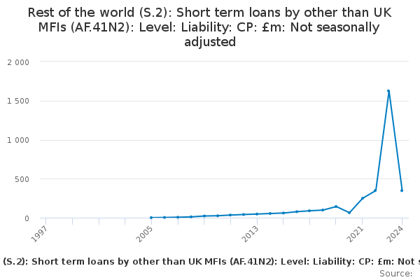 Download this time seriesRest of the world (S.2): Short term loans by other than UK MFIs (AF.41N2): Level: Liability: CP: £m: Not seasonally adjusted
