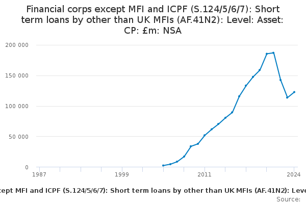Download this time seriesFinancial corps except MFI and ICPF (S.124/5/6/7): Short term loans by other than UK MFIs (AF.41N2): Level: Asset: CP: £m: NSA