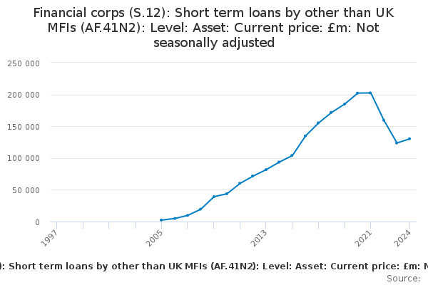 Download this time seriesFinancial corps (S.12): Short term loans by other than UK MFIs (AF.41N2): Level: Asset: Current price: £m: Not seasonally adjusted