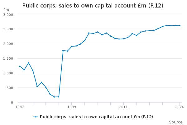 Download this time seriesPublic corps: sales to own capital account £m (P.12)