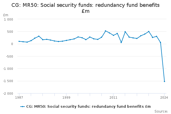 Download this time seriesCG: MR50: Social security funds: redundancy fund benefits £m
