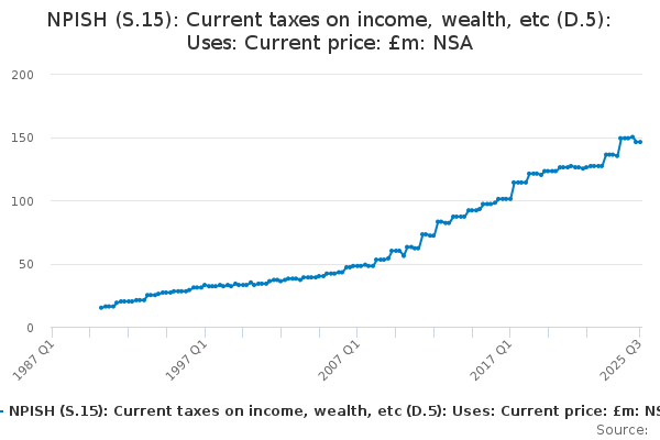 Download this time seriesNPISH (S.15): Current taxes on income, wealth, etc (D.5): Uses: Current price: £m: NSA