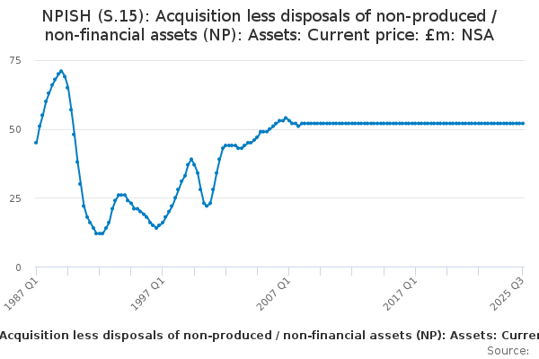 Download this time seriesNPISH (S.15): Acquisition less disposals of non-produced / non-financial assets (NP): Assets: Current price: £m: NSA