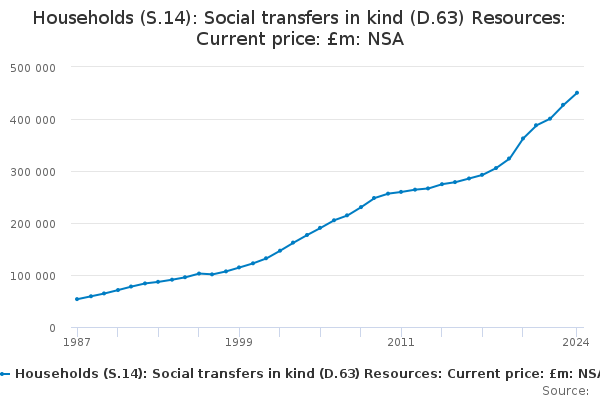 Download this time seriesHouseholds (S.14): Social transfers in kind (D.63) Resources: Current price: £m: NSA