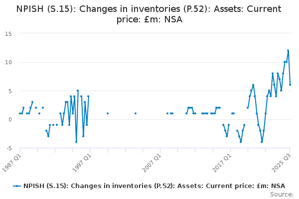 Download this time seriesNPISH (S.15): Changes in inventories (P.52): Assets: Current price: £m: NSA