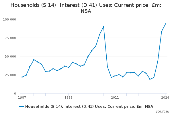 Download this time seriesHouseholds (S.14): Interest (D.41) Uses: Current price: £m: NSA