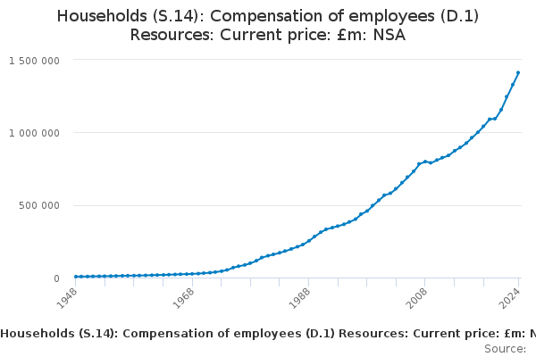 Download this time seriesHouseholds (S.14): Compensation of employees (D.1) Resources: Current price: £m: NSA