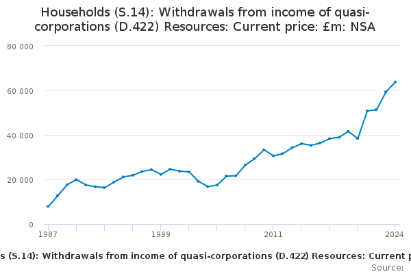 Download this time seriesHouseholds (S.14): Withdrawals from income of quasi-corporations (D.422) Resources: Current price: £m: NSA