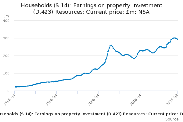 Download this time seriesHouseholds (S.14): Earnings on property investment (D.423) Resources: Current price: £m: NSA