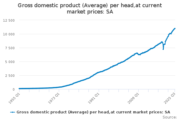 Download this time seriesGross domestic product (Average) per head,at current market prices: SA