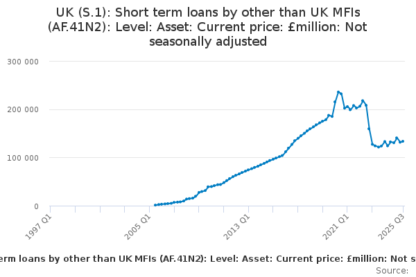 Download this time seriesUK (S.1): Short term loans by other than UK MFIs (AF.41N2): Level: Asset: Current price: £million: Not seasonally adjusted