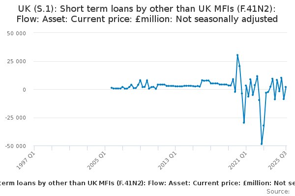 Download this time seriesUK (S.1): Short term loans by other than UK MFIs (F.41N2): Flow: Asset: Current price: £million: Not seasonally adjusted