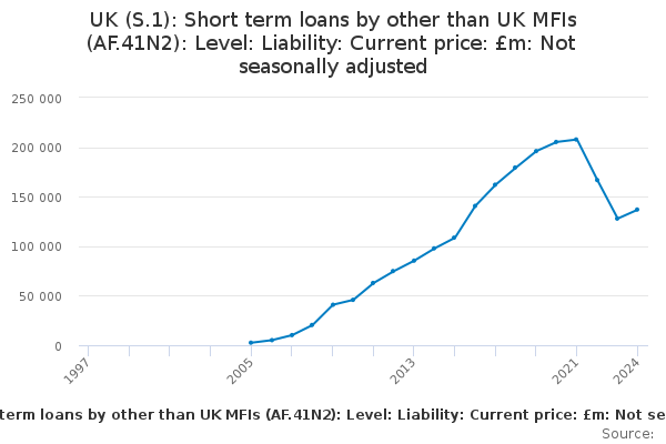 Download this time seriesUK (S.1): Short term loans by other than UK MFIs (AF.41N2): Level: Liability: Current price: £m: Not seasonally adjusted