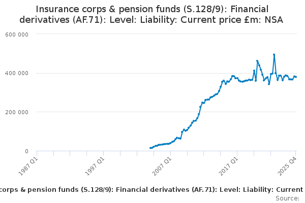 Download this time seriesInsurance corps & pension funds (S.128/9): Financial derivatives (AF.71): Level: Liability: Current price £m: NSA